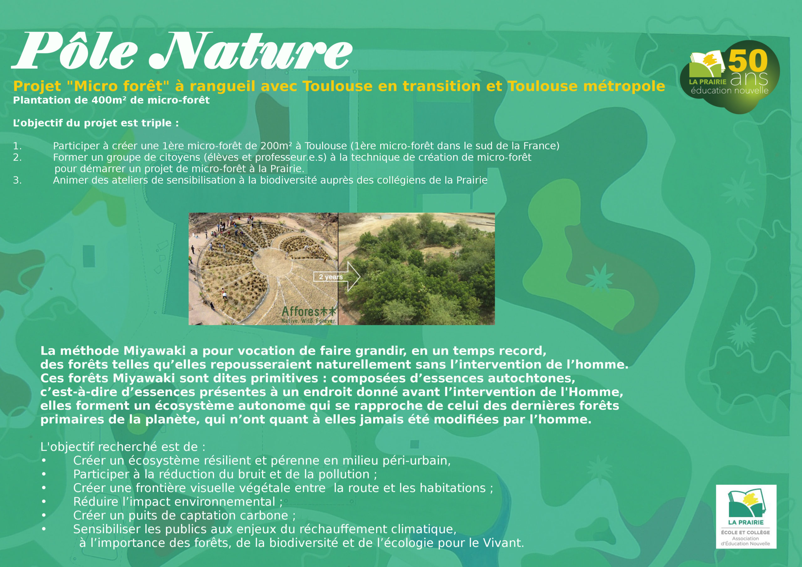 • la participation active au projet Micro Forêt à rangueil avec Toulouse en transition et Toulouse métropole