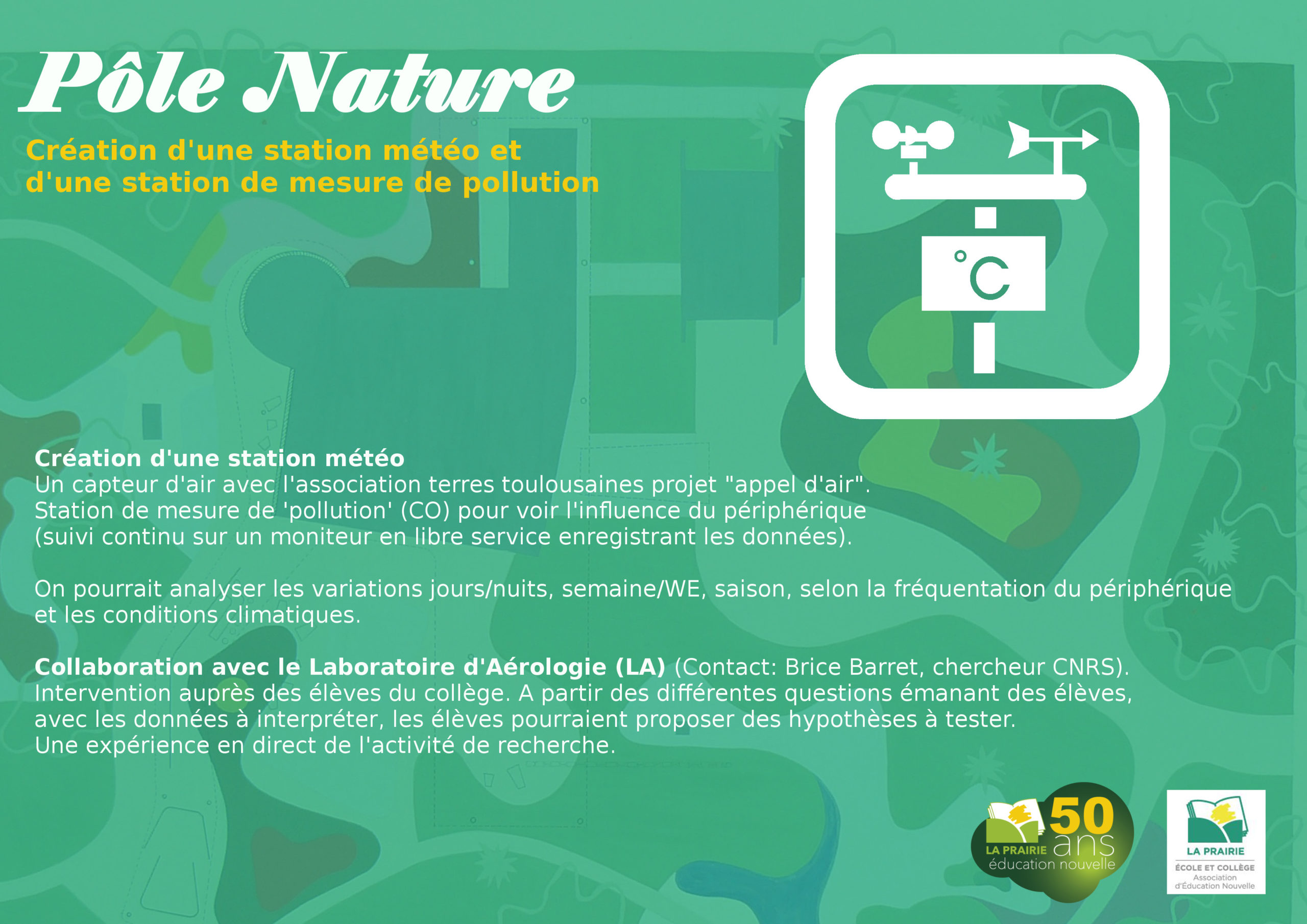 • la création d’une station météo en collaboration avec le Laboratoire d’Aérologie (LA)